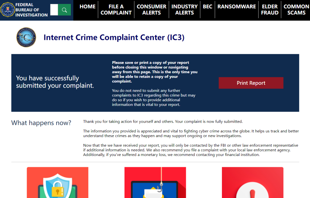 我已向FBI“Internet Crime Complaint Center (IC3)”提交了报告(20230308 23:43),内容:
