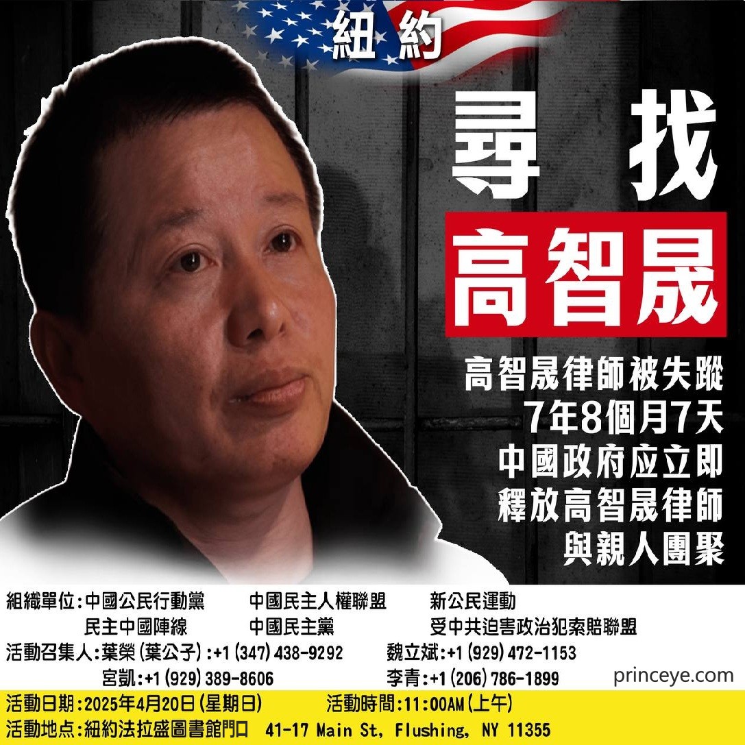 紐約活動:尋找高智晟,420高律師61歲生日,中共放人!全球聲援聯動!
